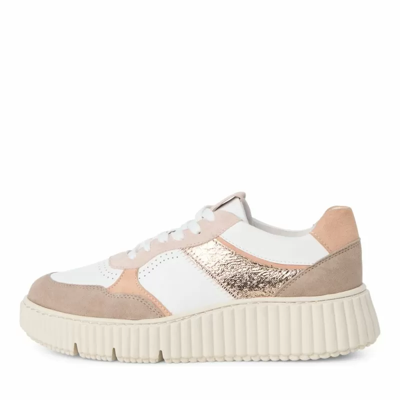 Какви разновидности дамски сникърси предлагаме и как да изберете най-подходящия за вас модел В света на модата дамските сникърси са не просто удобни обувки, а стилен аксесоар, който допълва всяка визия. В PUNTO знаем, че дамите обичат разнообразието, затова предлагаме богат избор от модели дамски сникърси, които съчетават комфорт, качество и модерна визия. Сред най-популярните ни предложения са дамските сникърси на платформа. Тези дамски сникърси на платформа добавят допълнителна височина, без да жертват удобството, което ги прави идеални както за ежедневието, така и за по-елегантни комбинации. Моделите на платформа осигуряват добра поддръжка на стъпалото и са предпочитани от дамите, които искат да удължат силуета си, без да носят високи токчета. Друг отличителен елемент на предлаганите от нас дамски сникърси е изборът на материал. Обувките от естествена кожа са сред най-предпочитаните заради своята издръжливост, мекота и способността да позволяват на крака да диша. Моделите от естествена кожа са инвестиция, която си заслужава, защото гарантират дълготрайност и стил, съчетавайки се с всякакъв тип облекло – от спортно-елегантен до небрежен. При избора на дамски сникърси трябва да се съобразите с вашия начин на живот и стил. Ако прекарвате дълги часове на крак, моделите с омекотена подметка и стабилна опора ще бъдат най-добрият избор. За тези, които търсят модерен и елегантен вид, сникърсите на платформа са идеалният вариант. Разгледайте нашите предложения и открийте перфектния чифт дамски сникърси в PUNTO – качеството, стилът и удобството са на отлична цена! Какви са ползите от носенето на дамски сникърси на платформа и защо да заложите на модели от естествена кожа Дамски сникърси | 1 Дамски сникърси - Вижте повече! Изборът на подходящи дамски сникърси може да има огромно значение за вашия комфорт и самочувствие. В последните години един от най-популярните модели на пазара са сникърсите на платформа. Тези дамски сникърси на платформа предлагат удобството на спортните обувки, но с допълнителен стил и леко повдигане, което ги прави идеални за дамите, желаещи да изглеждат по-високи, без да правят компромис с удобството. Основното предимство на дамските сникърси на платформа е, че разпределят тежестта равномерно върху стъпалото, което намалява натоварването върху краката и ставите. Това ги прави чудесен избор за жени, които прекарват много време в движение. Освен това моделите дамски сникърси на платформа осигуряват допълнителна стабилност в сравнение с класическите високи токове. Ако искате да инвестирате в качествени дамски сникърси, естествената кожа е най-добрият избор. Тя е не само издръжлива, но и позволява на крака да диша, предотвратявайки неприятните миризми и изпотяването. Дамските сникърси от естествена кожа изглеждат стилно и могат да се носят както с дънки и тениска, така и с по-елегантни комбинации. В PUNTO предлагаме дамски сникърси на платформа, изработени от естествена кожа, които осигуряват перфектен баланс между комфорт и модерна визия. Можете да разгледате и поръчате най-новите модели дамски сникърси на платформа от естествена кожа онлайн и да се възползвате от конкурентна цена, която прави високото качество достъпно за всеки. Ако искате обувки, които ще ви служат дълго и ще ви карат да се чувствате страхотно при 